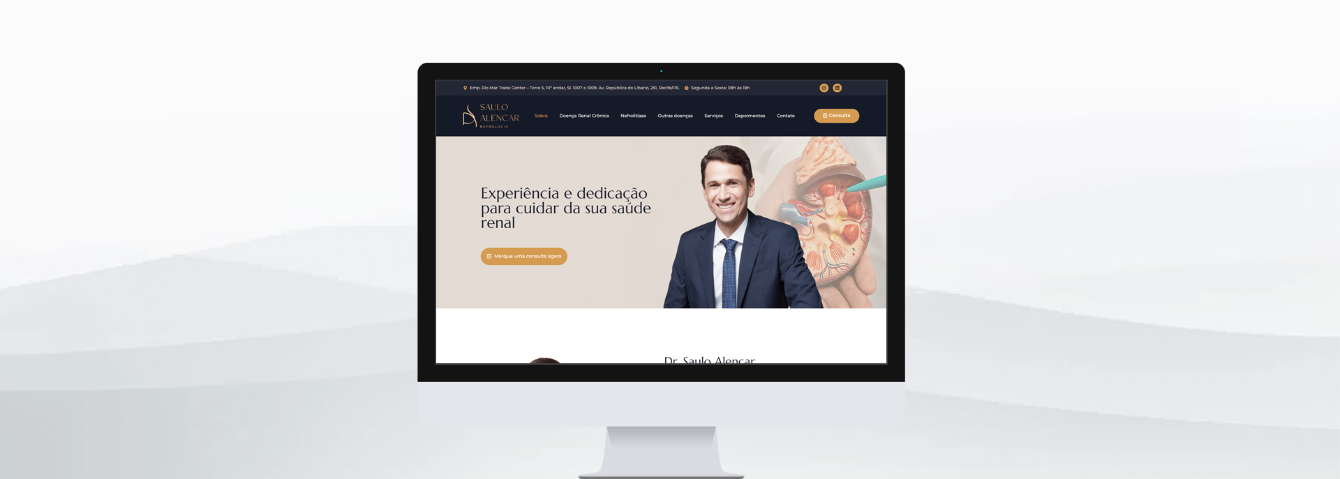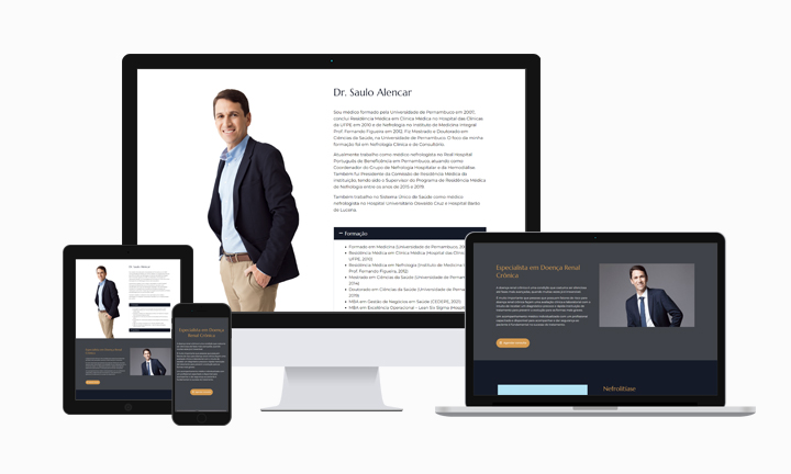 O site é no formato one page, com as informações em uma única página, facilitando a navegação e a busca por informações. Direto e atrativo, o site possui informações relevantes para a saúde dos rins e outras doenças relacionadas. E espaço para os depoimentos de pacientes.